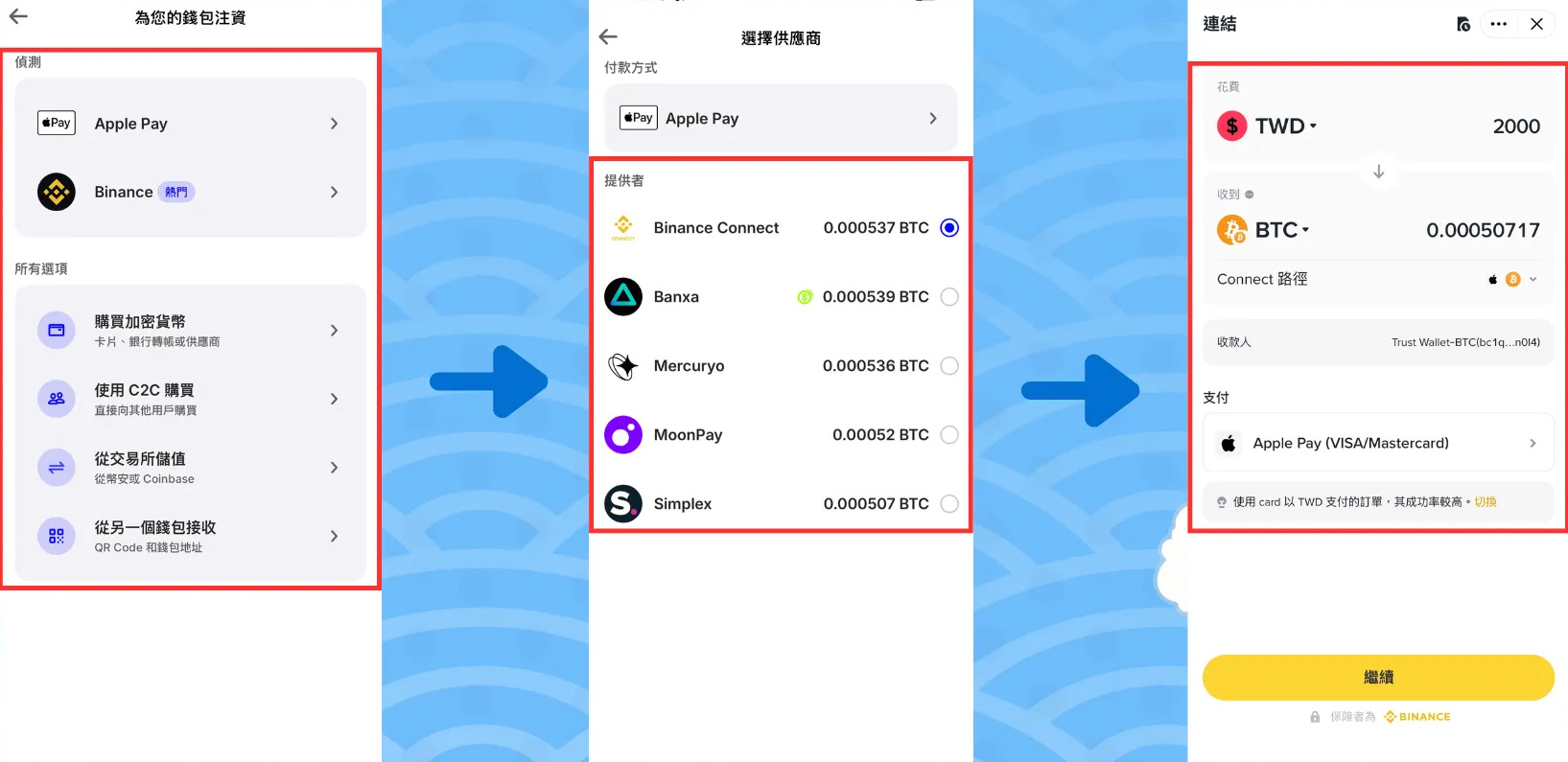 Trust Wallet 入金教学|用信用卡购买加密货币(BTC、ETH、BNB)