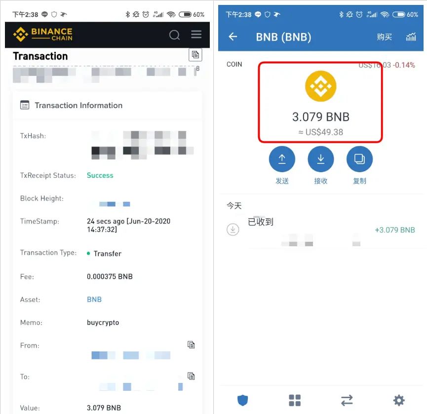 系统会自动跳出成功转帐到币安链的资讯,回到Trust Wallet,可以看到你成功购买约3 颗币安币喽!