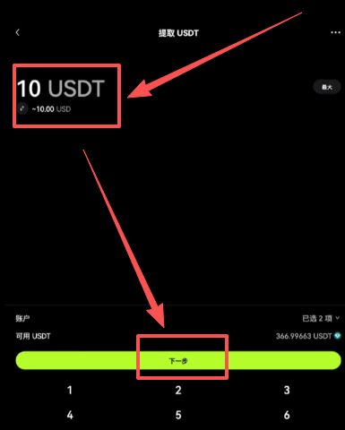 接下来输入我们要提币的数量,比如说我现在想提10个USDT,点击【下一步】。