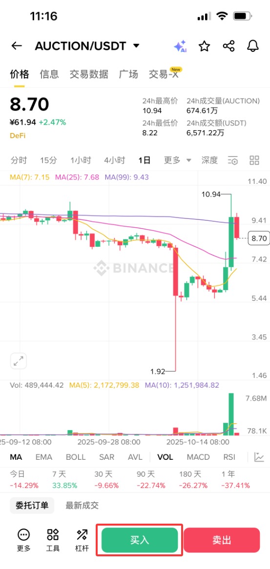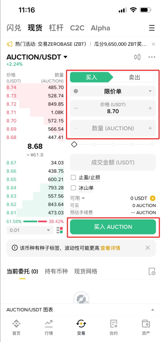下面以币安为例,为大家演示AUCTION币购买步骤教程。