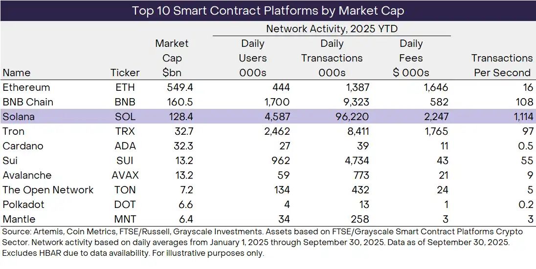 灰度认为:Solana 在愿景上表现为一个「面向所有人开放的快速、低价的区块链」。但其特定的设计为其竞争对手在某些用例中抢占或保留市场份额留下了空间。