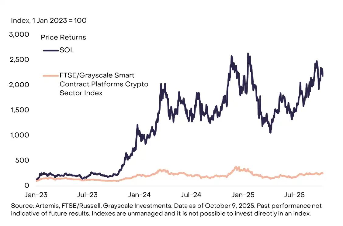 但从 2023 年底开始,SOL 代币开始复苏,表现显着优于富时/灰度智能合约平台加密货币行业指数。