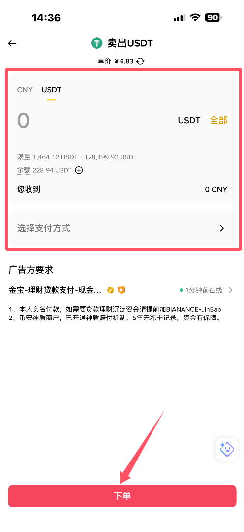 Step 2:C2C卖出USDT