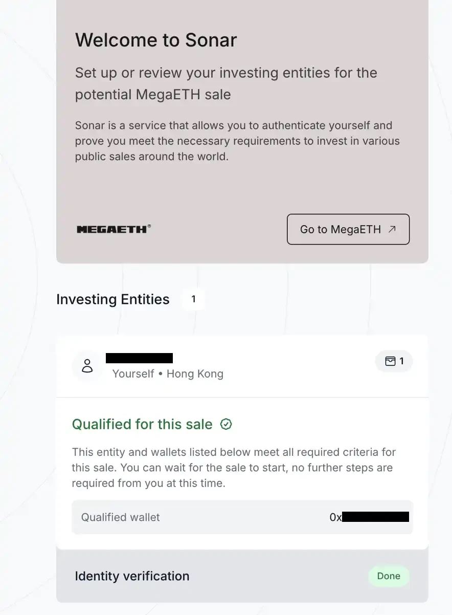 需要注意的是,在打款阶段,有可能会触发二次人脸验证,或者被要求重新提交近 90 天内的住址证明,所以多关注 @megaeth_labs 的官方推特、和 Sonar 的邮件通知。