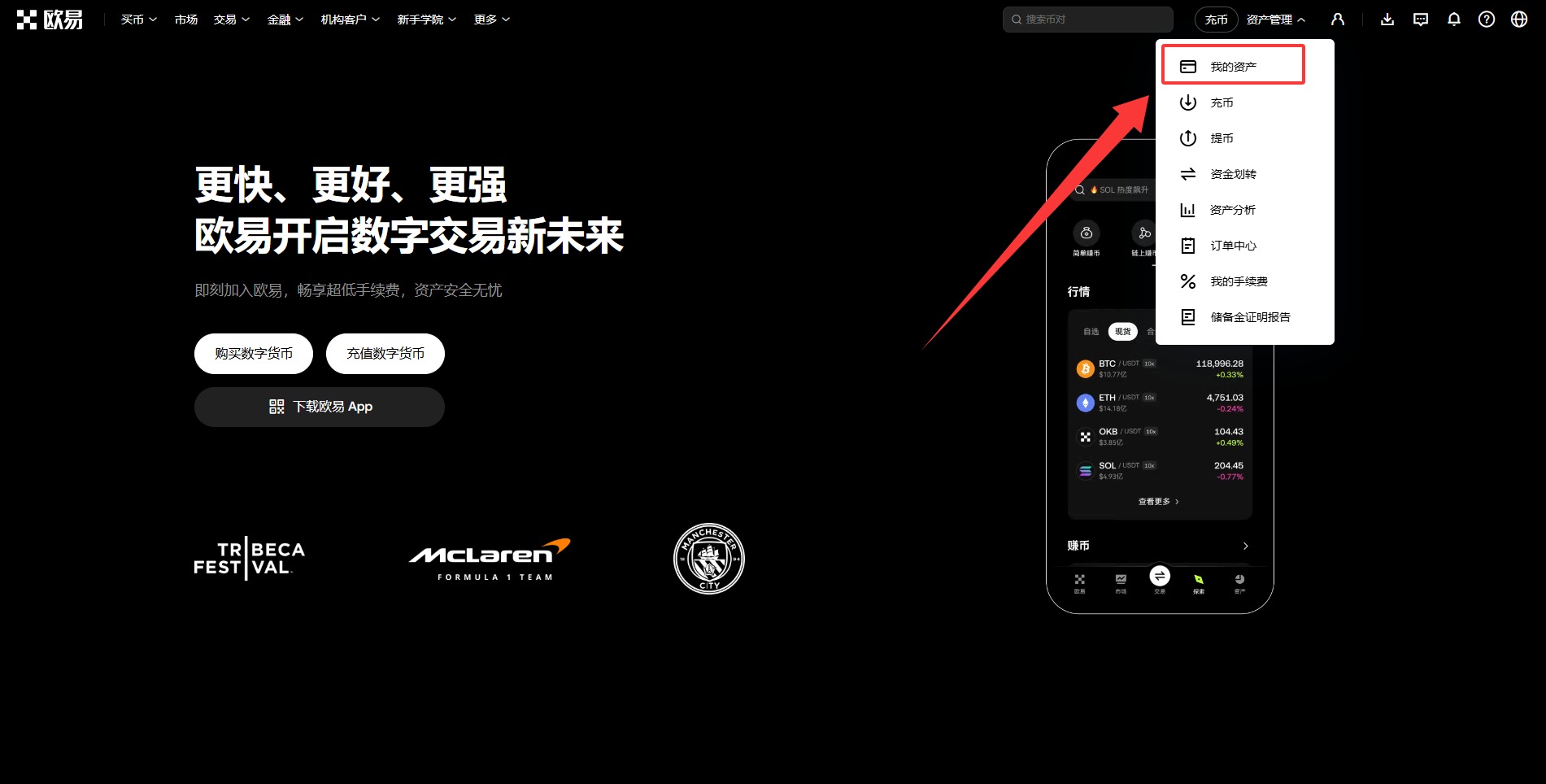 在我们买完USDT之后,我们可以点击左上角的欧易返回到主页,点击右上角的【资产管理】,选择【我的资产】。
