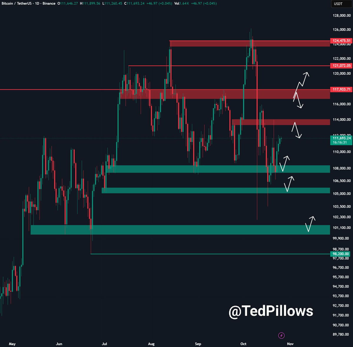“我仍然在关注一个 $112,000-$114,000的区域,因为回收可能会很快将BTC推高至 $118,000。