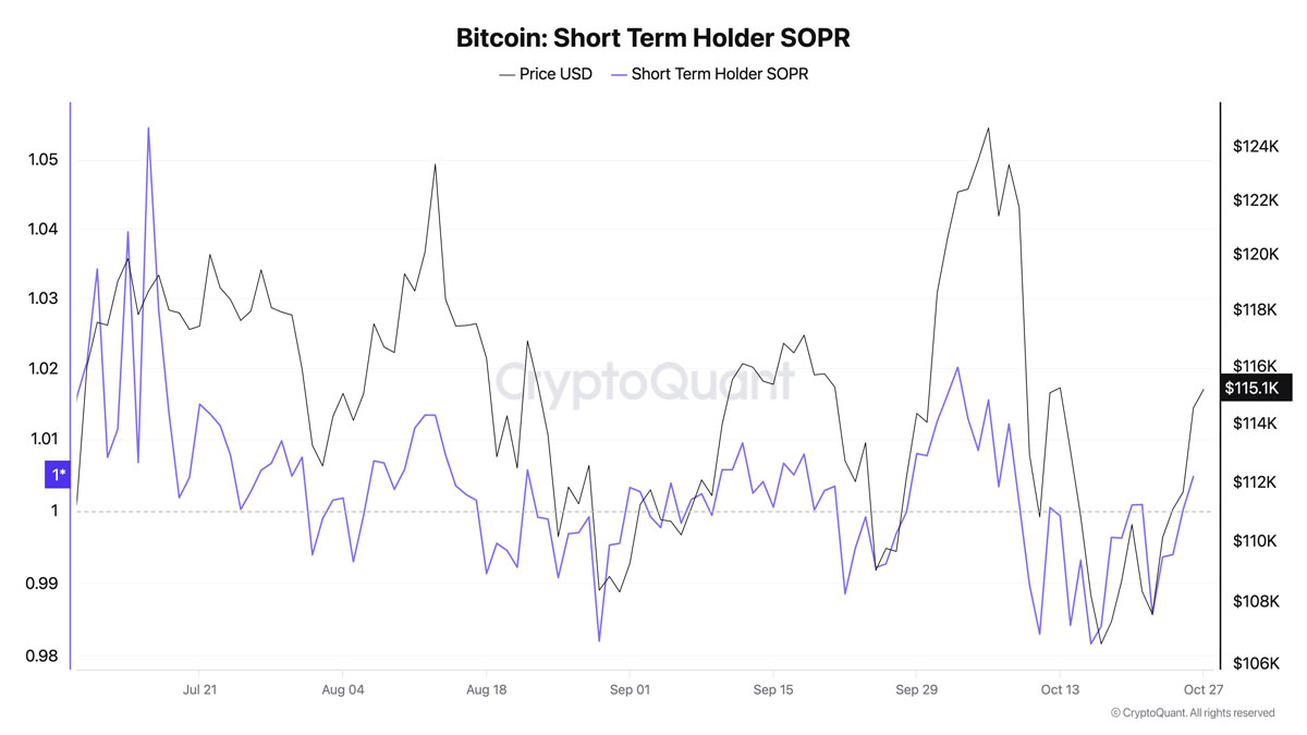 比特币STH-SOPR。来源:CryptoQuant