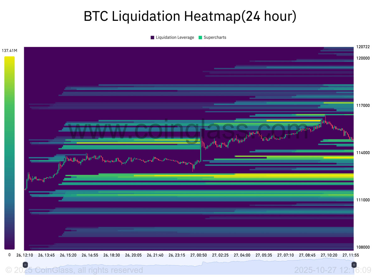 BTC清算热图。来源:CoinGlass
