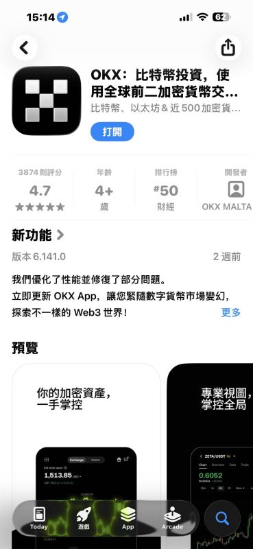 9.然后大家就登录成功了,在APP store的搜索一栏输入需要的加密货币交易所,大家就可看到币安、欧易、火币、Gate.io、Bitget、Bybit这些加密货币交易所了,点击取得,进入下载钱的密码验证界面,输入密码即可。