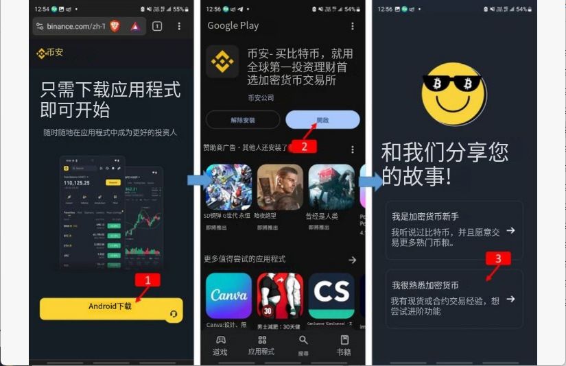 至Google Play下载完成币安app,下载完成后选择「打开」