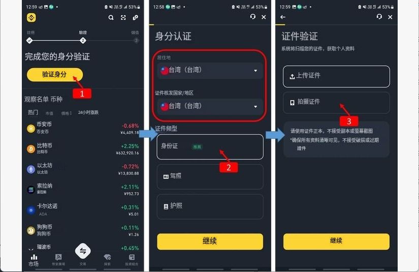 登录币安app,选择「验证身分」