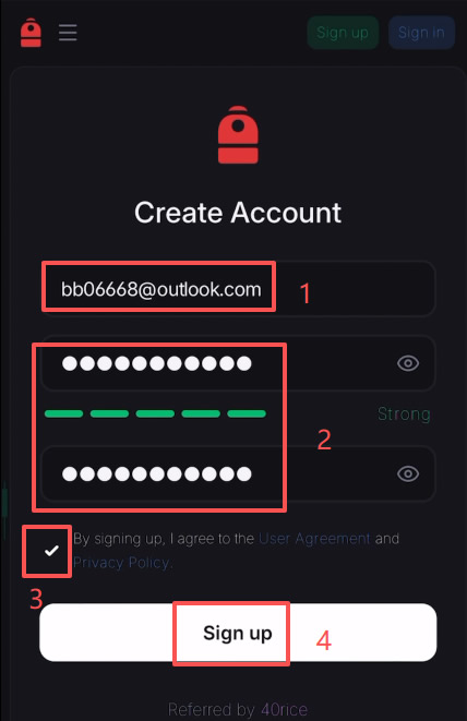 进入到这个链接之后,输入我们的邮箱,然后再为我们的账户设置一个密码,以及确认密码,勾选同意,点击注册。