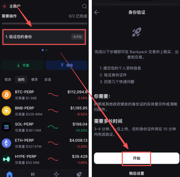 注册成功之后,它会要求我们验证您的身份,我们点击。再点击【开始】。