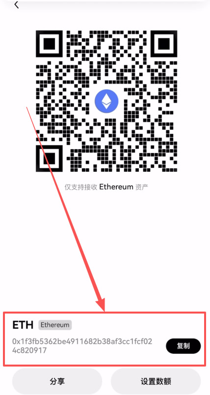 这样我的充币地址就显示出来了,我们点击【复制】。