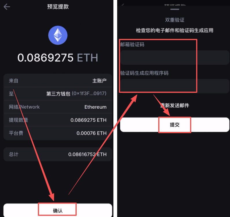 点击【确认】,继续验证一下我们的邮箱和谷歌验证器,点击【确认】。