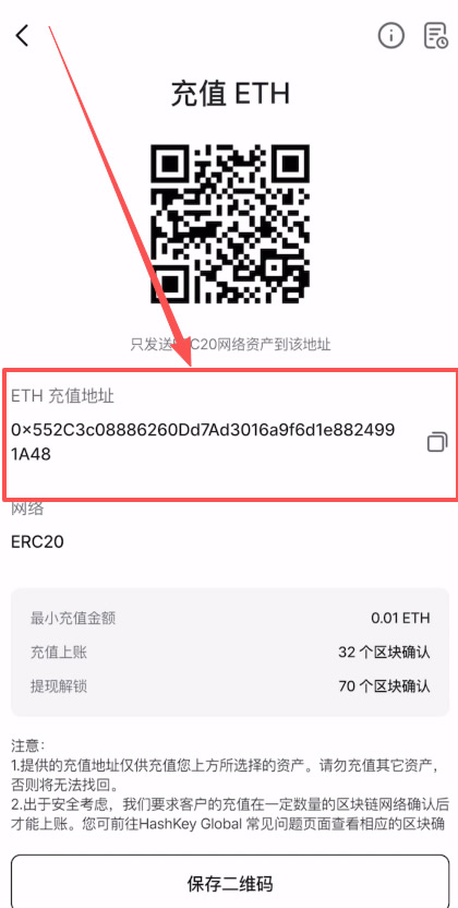 因为我的这个地址在Hashkey里面添加过白名单,所以我们就拿这个地址来当中介使用,来当一个桥梁去使用。等我们的钱到了这个钱包地址之后,我们就能够把这个钱包地址里面的以太坊再转到Hashkey里面了。
