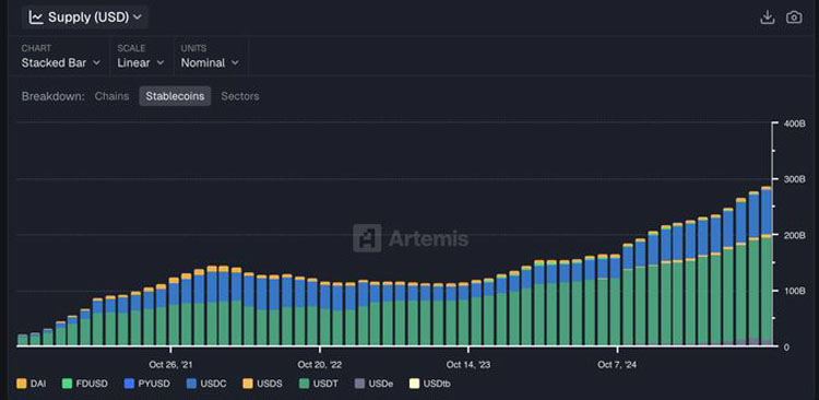 当前市场稳定币总量 交易量数据 https://app.artemisanalytics.com/stablecoins