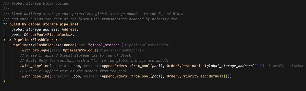 Uniswap 团队的 @MarkToda 提出了一种新方法,通过全球存储智能合约 + 专门的区块构建器策略实现: