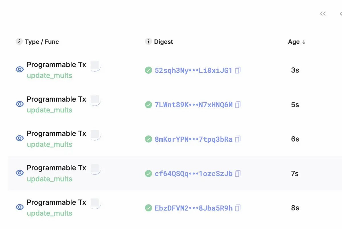 传统 AMM(如 Uniswap v2)通常使用公式 x * y = k 来决定价格,其中 x 和 y 分别代表池中两种资产的数量,k 为恒定值。而在 Prop AMM 中,定价公式并非固定不变,而是会被高频更新(通常每秒更新多次)。由于大多数 Prop AMM 的内部机制属于「黑箱」,外界并不知道它们使用的确切算法。然而,Sui 链上 Obric 的 Prop AMM 智能合约代码是公开的(感谢 @markoggwp 的发现),其不变量 k 是依赖于内部变量 mult_x、mult_y 和 concentration 的。下图展示了做市商如何持续更新这些变量。