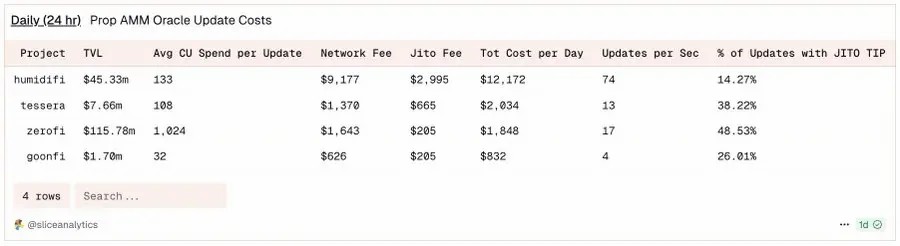 以 Solana 上的 Prop AMM HumidiFi 为例,据 @SliceAnalytics 数据,该做市商每秒更新报价高达 74 次。