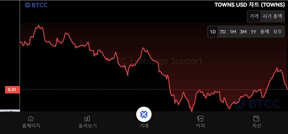 进入 10 月,随着 9 月下旬开始的抛售压力以及整个加密货币市场风险规避情绪的加剧,TOWNS Coin 的疲软态势进一步加剧。