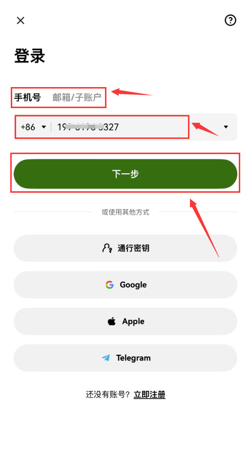 操作在APP首页,点击右上角的“登录”按钮。输入您在OKX平台注册的账户邮箱或手机号,输入密码后,点击登录。