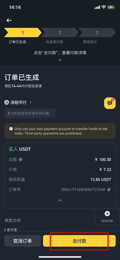 - 使用的支付宝账号和币安账号实名认证的姓名要一致;