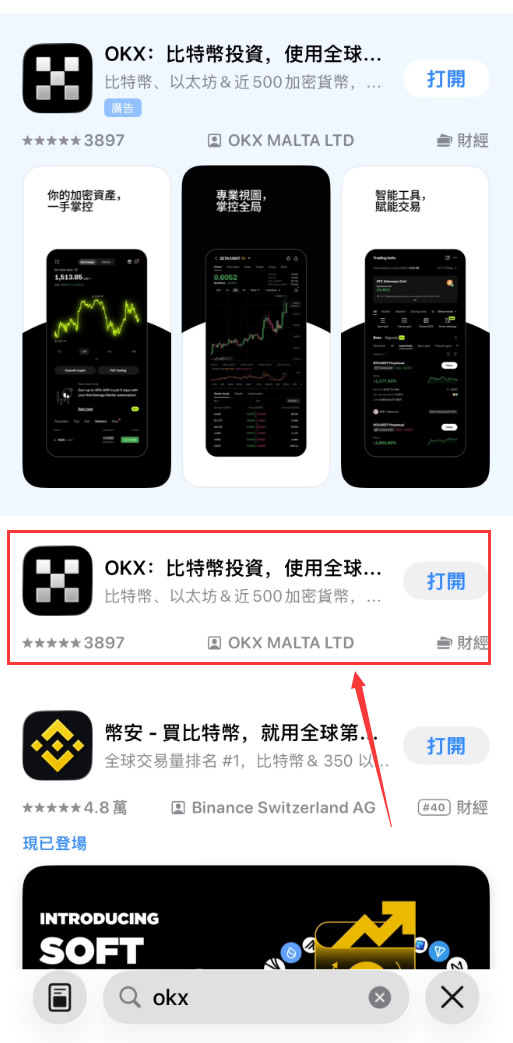 注意:中国大陆用户需要将apple ID改成台湾的ID,不然搜不到OKX APP。