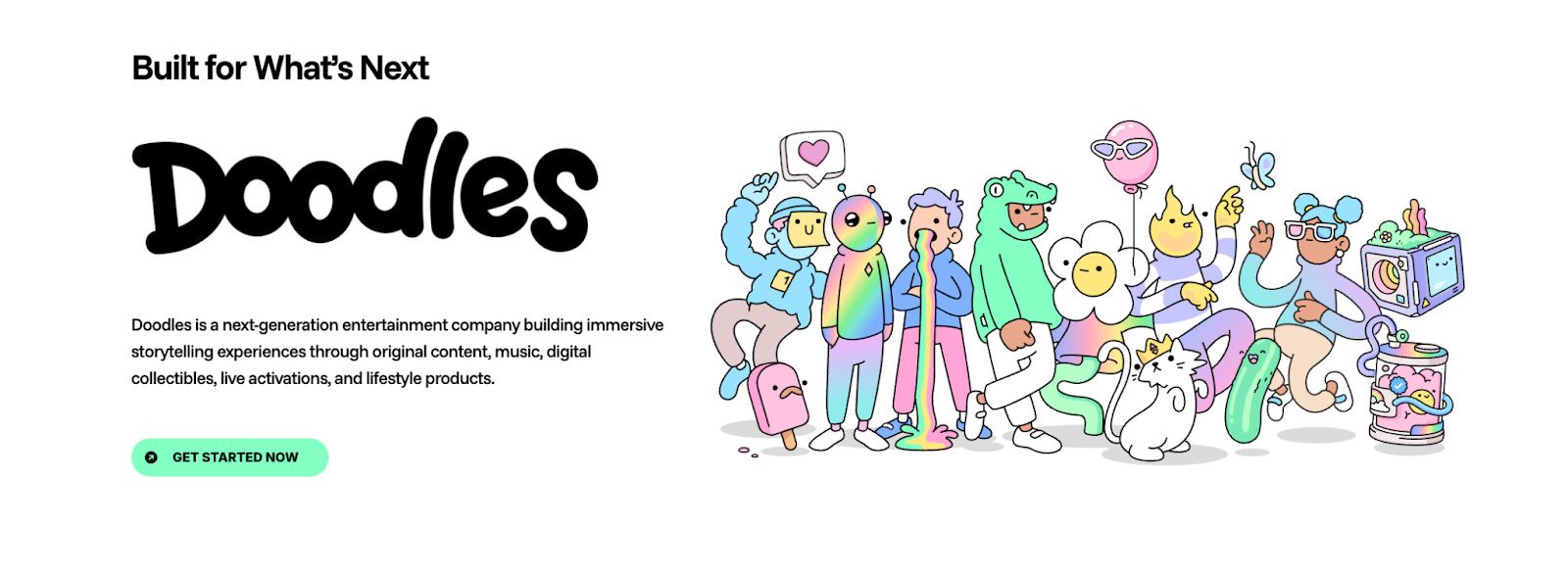 Doodles品牌代表创意所有权 — 其团队旨在将Web3技术与讲故事、音乐、游戏和现实世界娱乐相结合。该项目筹集资金扩展为多媒体工作室模式,聘请了娱乐行业的资深高管,将Web3与主流文化连接起来。