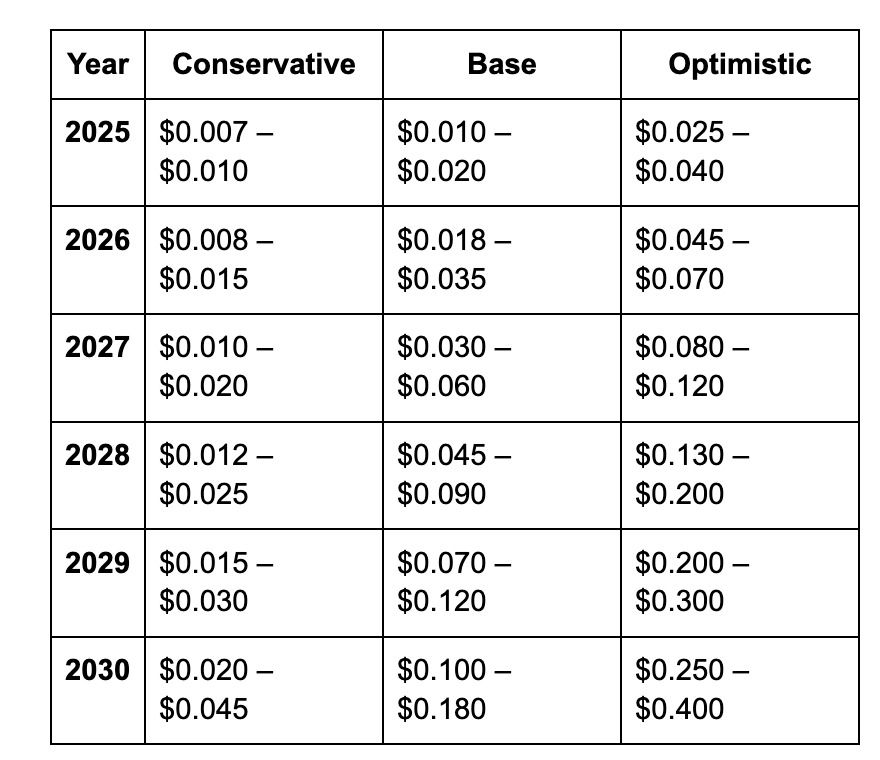 鉴于该代币的年轻性和对品牌执行的依赖性,预测主要依靠叙事强度和网络扩张,而非传统基本面。
