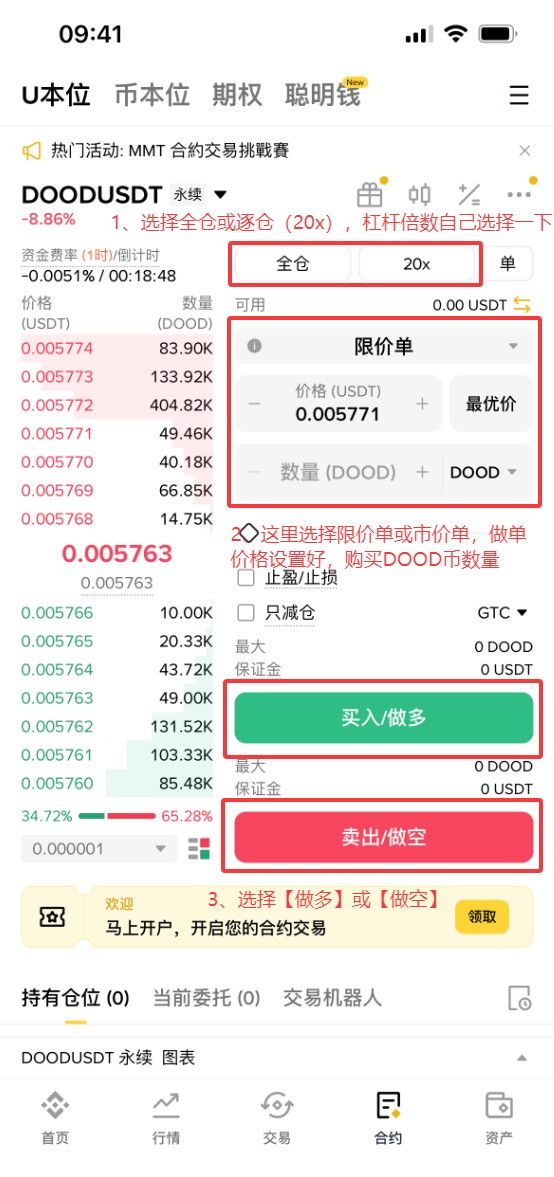 相比于现货,交易者在合约平台上交易DOOD 能获得更多收益。因为您只需要推测$DOOD 的涨跌,便可利用杠杆以更低的成本获得更高的收益。