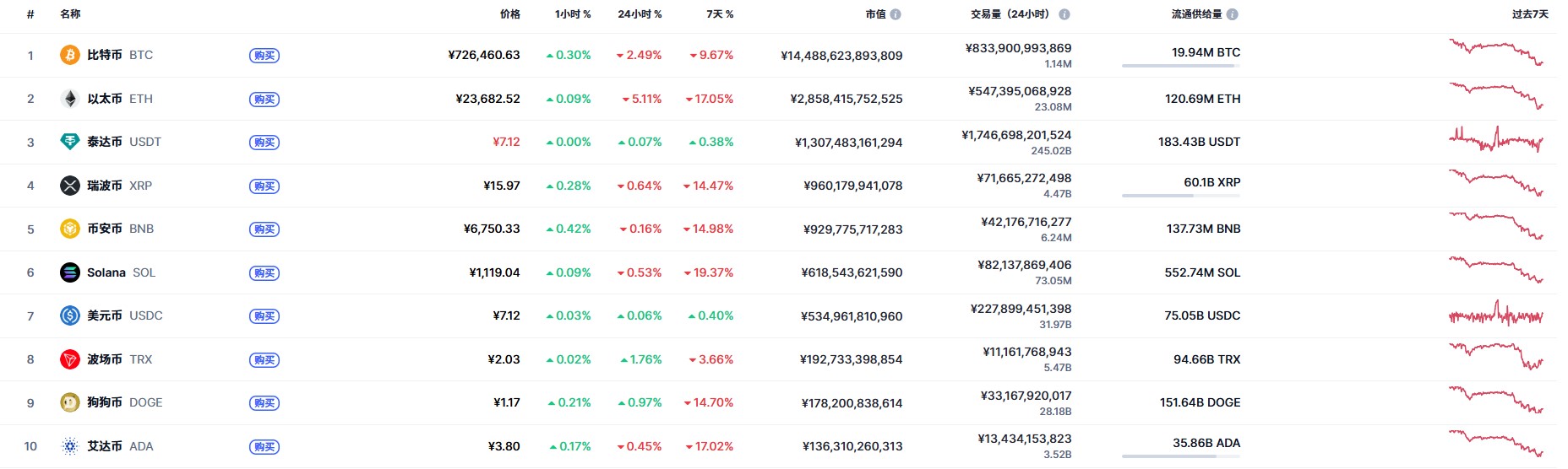2025全球前10名加密货币(数字货币)市值排行
