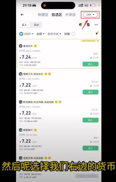 步骤3:选择交易区域币安C2C交易分为三个区域:快捷区、自选区和大宗区,通常我们选择【自选区】,这样可以自主筛选商家进行交易。
