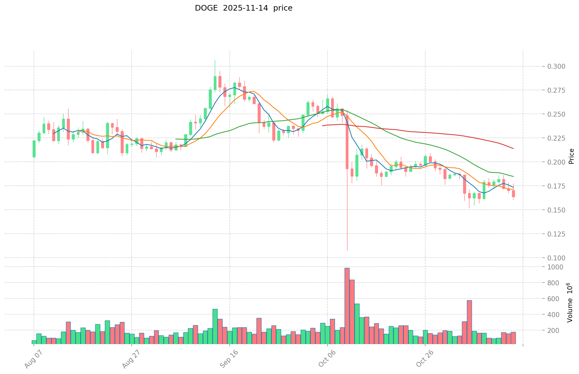 A:截至2025年11月,Dogecoin价格为0.16461美元,市值24,982,357,044美元,流通量约151,757,286,383 DOGE,24小时成交量29,008,836.40美元,受近期下跌影响市场情绪偏空。