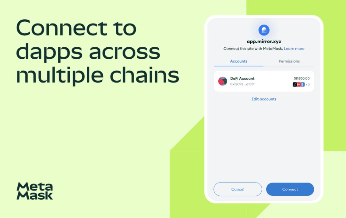 MetaMask 是由 Aaron Davis 和 Dan Finlay 在 ConsenSys 创建的非托管加密钱包。它于 2016-07 推出,迅速成为使用最广泛的以太坊钱包,最终扩展支持许多 EVM 兼容区块链。MetaMask 作为浏览器扩展和手机应用进程运行,允许用户在以太坊、Polygon、Arbitrum、Avalanche、Base 等网络间存储、发送和交换代币。