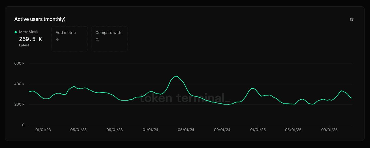MetaMask 上的月用户数。来源:Token Terminal 通过 MetaMask