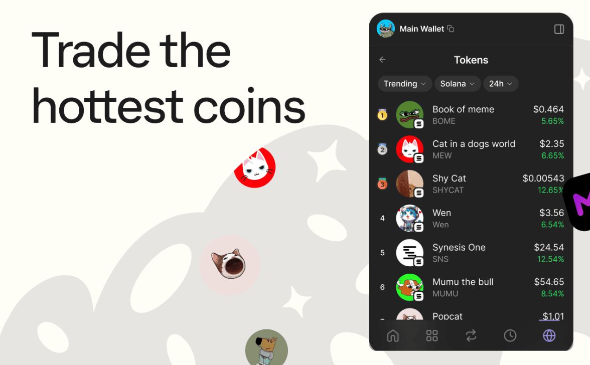 无论您是质押 SOL 以赚取被动收入、在顶级 Solana DEX(如 Jupiter 和 Raydium)上交易,还是在 Pump.fun 等平台上铸造热门迷因币,Phantom 都提供参与的工具。您还可以管理 USDC 和 UXD 等稳定币、跨链桥接资产,甚至与 NFT 市场和 DeFi 协议交互,所有这些都直接从钱包完成。
