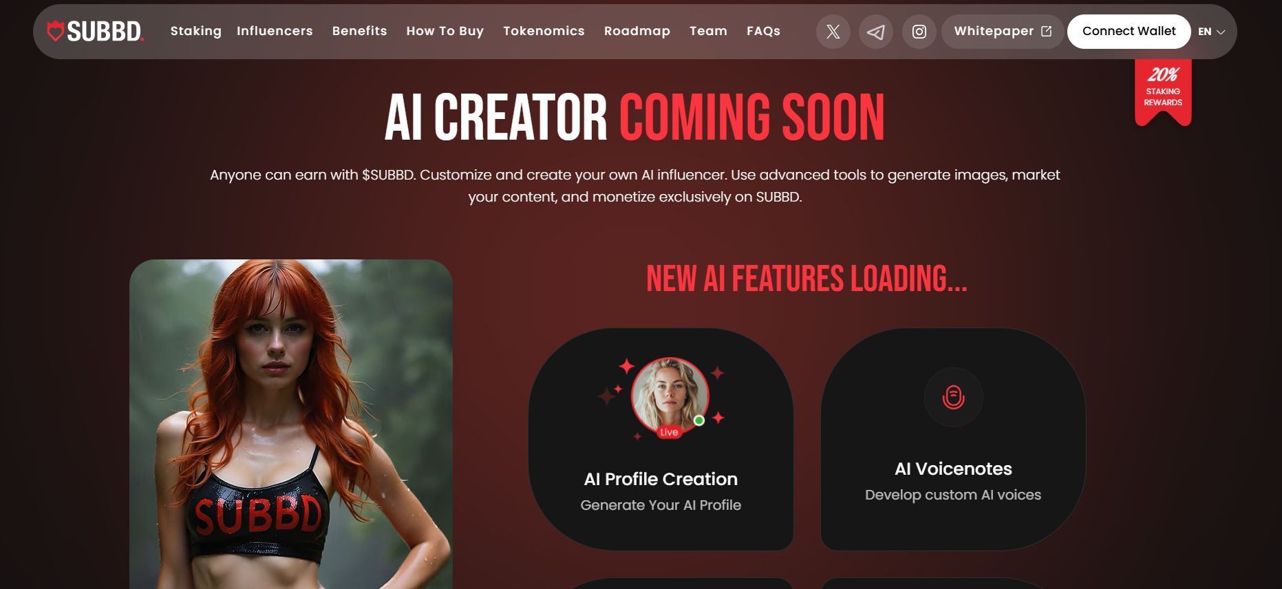 - AI 构建器的功能:您可以使用 $SUBBD 代币创建、定制并向数字影响者进行营销。