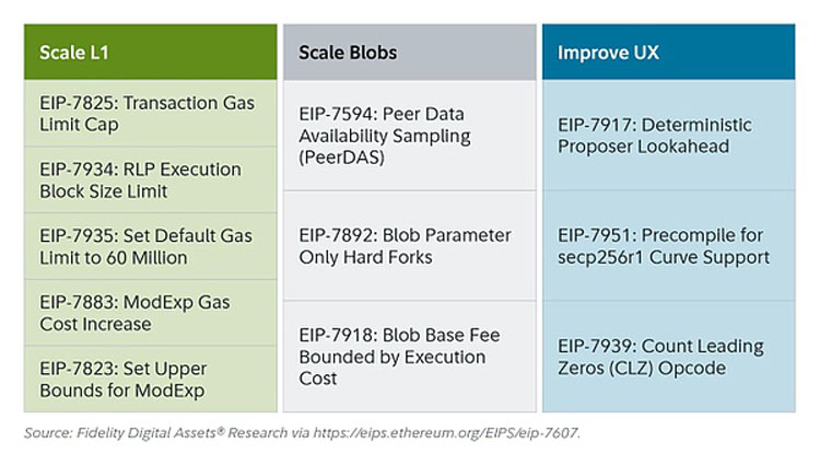 Fusaka升级体现了以太坊为使其发展与新制定的战略举措保持一致而做出的集中努力。为了更好地说明这一点,以下根据以太坊改进提案(EIP)与关键优先事项的一致性,对其进行了分类。