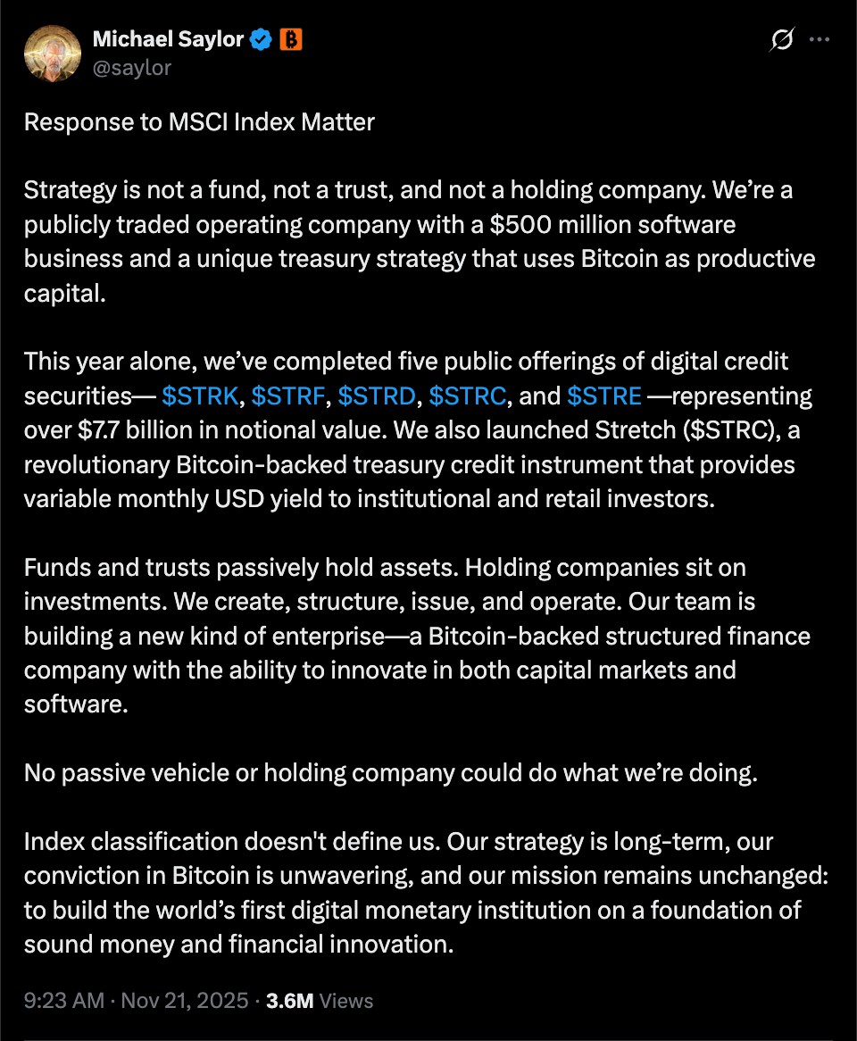 Strategy创始人Michael Saylor打破沉默回应MSCI