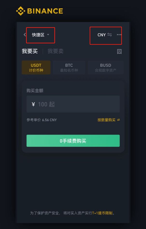 顶部的右边可以选择使用的法币,选择"CNY",人民币就行。