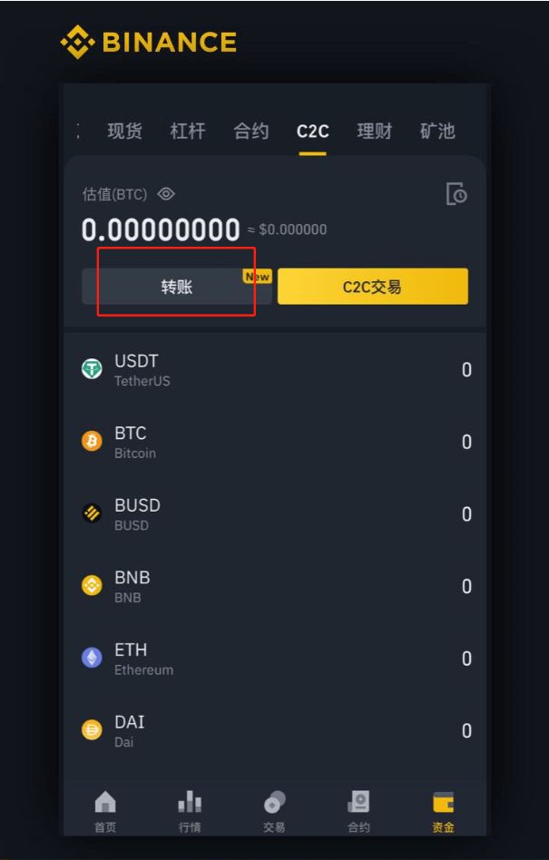 APP底部选择”资金“菜单,顶部选择"C2C"