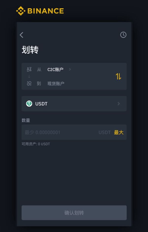从”C2C账户“转到”现货账户“,选择要划转的币种,输入数量,确认划转即可。