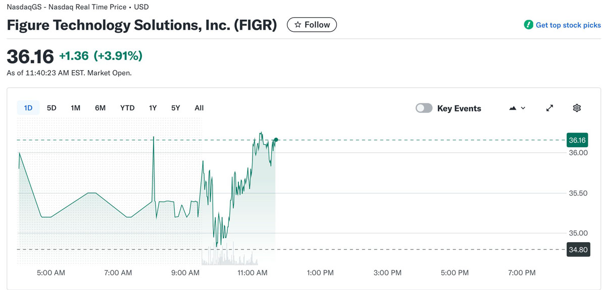 根据雅虎财经数据,Figure的股价周一早盘上涨近4%。