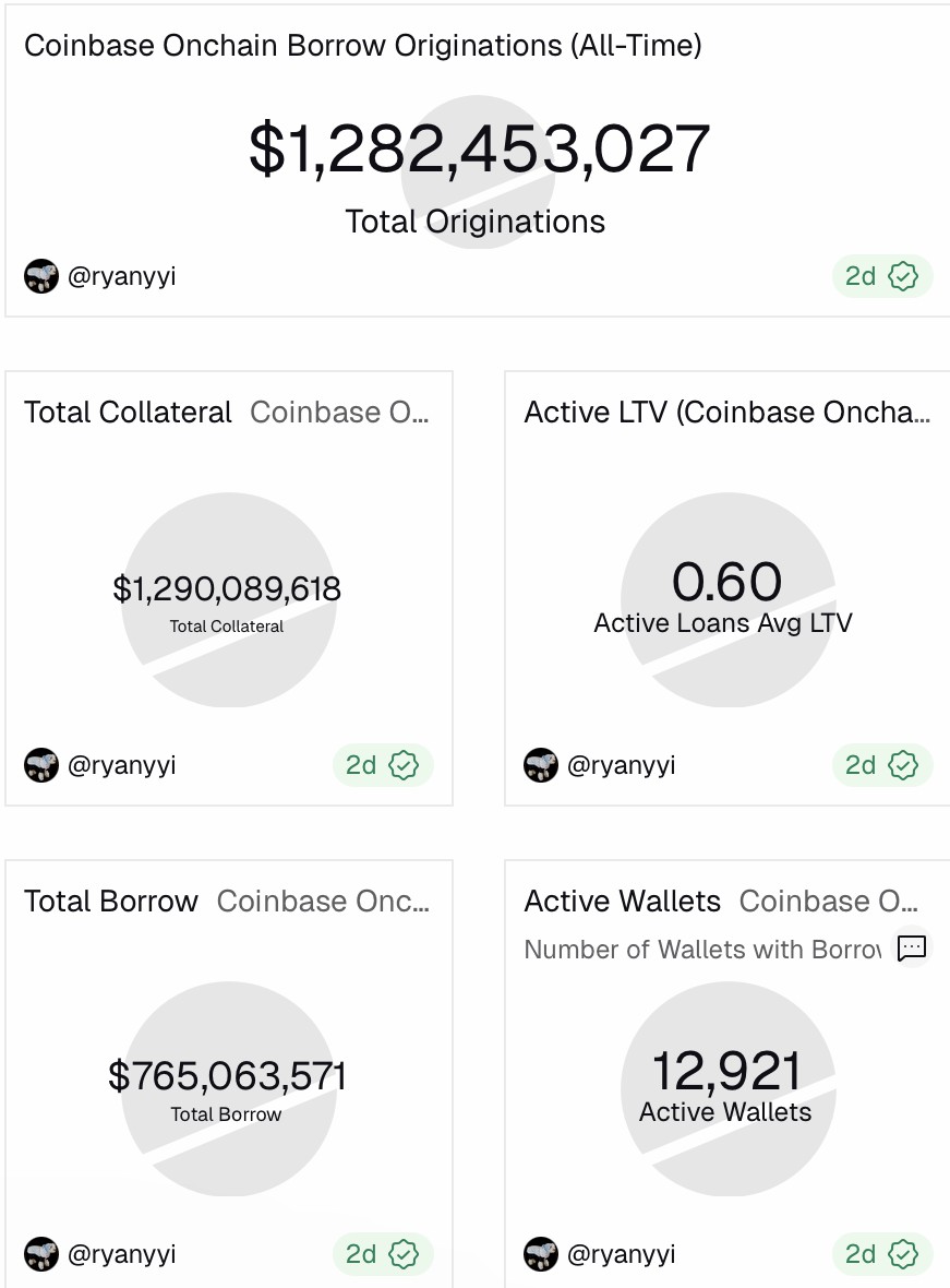 根据Dune数据,Coinbase的链上借贷市场自今年早些时候推出以来,已处理约12.8亿美元的贷款发放。