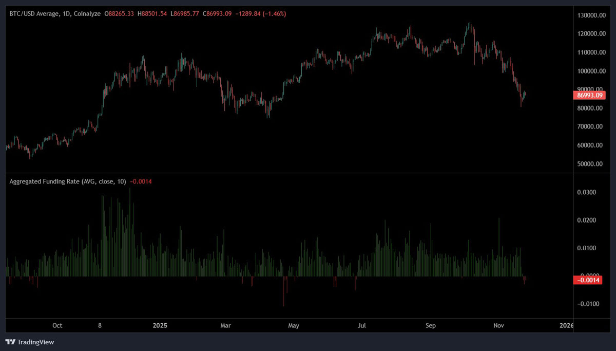 因资金费率转为负值,比特币空头回补或推动BTC拉升至9万美元解读