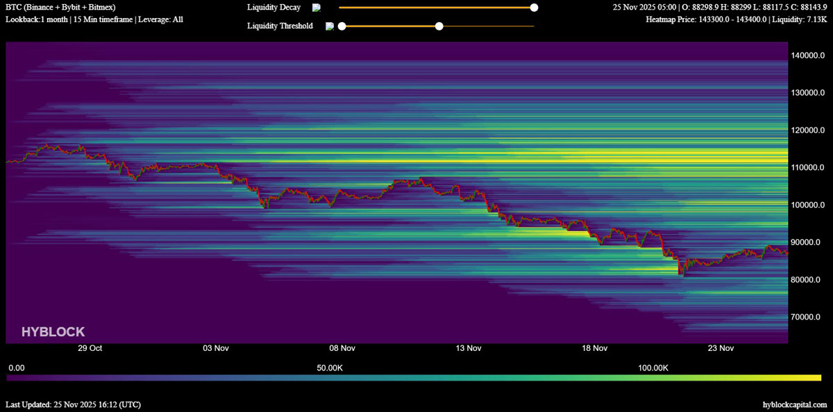 负比特币资金费率和大量的空头流动性区域可能表明,价格可能会出现短暂挤压至90,000美元及更高。