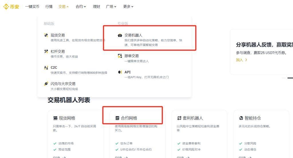 「合约网格」是币安提供的网格交易机器人进程,专门在币安的期货合约市场(Binance Futures)执行网格策略交易,它能帮助用户在指定的币价范围内快速布下递增和递减价格的网格订单,并且通过进程自动化地买卖期货合约。