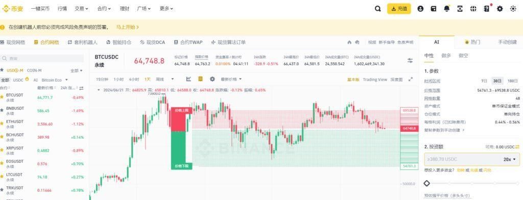 - 杠杆作用:合约网格可以使用杠杆,这意味着你可以用更少的保证金来撬动更大的头寸,从而放大收益(同时也放大风险)。