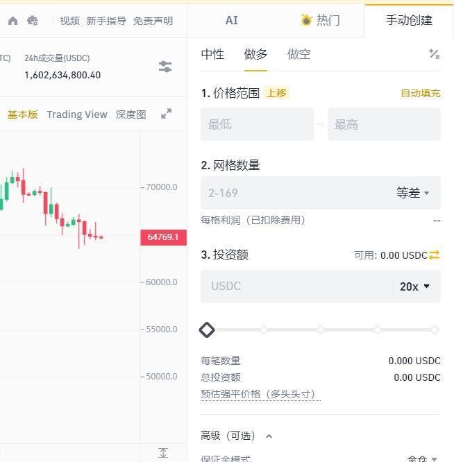 一键创建:就是直接套用币安给的推荐参数,可以帮你快速设置价格范围跟网格数量